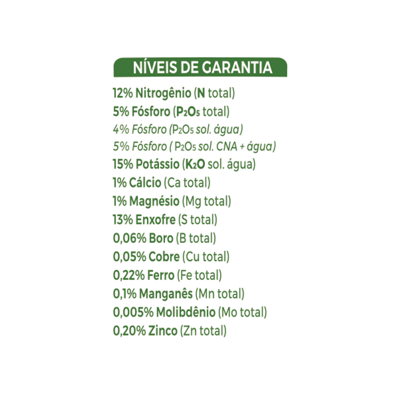 - Mg (sol. em água) 4,00 % (52,0g/L)